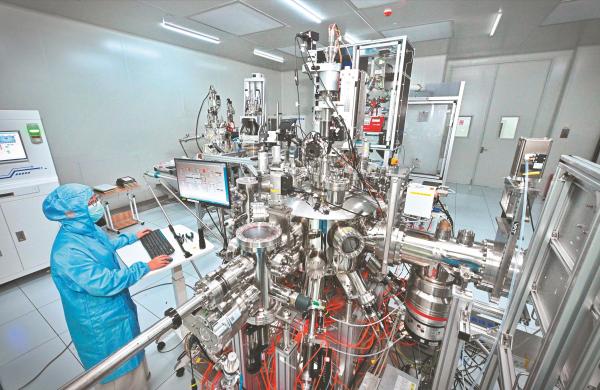 10月14日,在位于合肥新站高新区的北航合肥创新研究院,第三方企业的技术人员使用“共享实验室”的超高真空磁控溅射设备开展半导体材料的生长实验。