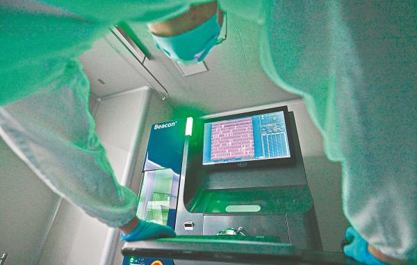 10月17日,在合肥综合性国家科学中心大健康研究院抗体研发中心,工作人员使用单细胞光导筛选系统,实现对数以万计单细胞进行深入表征和筛选。