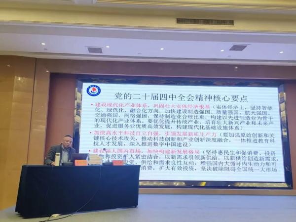 21日上午,举办“徽商讲师团走进皖北”宣讲活动。宿州市委统战部副部长、市工商联党组书记李惠海致辞。会上,邀请徽商讲师团专家王唤明博士以《学习贯彻党的二十届四中全会精神,推动皖北地区高质量发展》、《徽商精神与民营企业发展启迪》为题作专题授课。