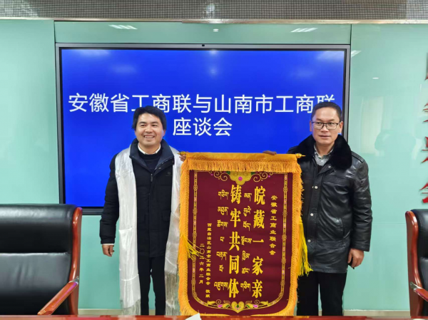 会上,山南市工商联向安徽省工商联赠送锦旗,表达对安徽援藏工作和工商联支持帮助的诚挚谢意。