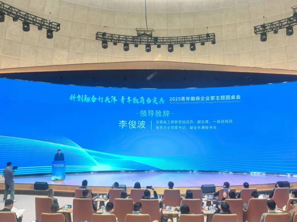 11月2日,以“科创融合打头阵,青年徽商当尖兵”为主题的2025青年徽商企业家主题圆桌会在合肥举行。省工商联党组成员、副主席、一级巡视员,徽商总会党委书记、副会长兼秘书长李俊波出席活动并致辞。中国信达资产管理股份有限公司安徽省分公司党委书记、总经理徐超;徽商总会副会长、徽商总会青年徽商专委会主任,北京盛世宏明投资基金管理有限公司董事长姜明明以及近百名青年徽商企业家参加活动。