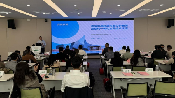 安徽寰博新材料科技有限公司董事长苏同飞介绍了《传统保温脱落问题分析和保温结构一体化应用技术交流》,从传统保温外墙脱落的多种原因分析,有针对性地解决了保温结构一体化免拆板的应用技术,不仅解决外墙脱落,又能降低工程成本和缩短工期,同时在质量上体现保温材料与工程同寿命的特点。