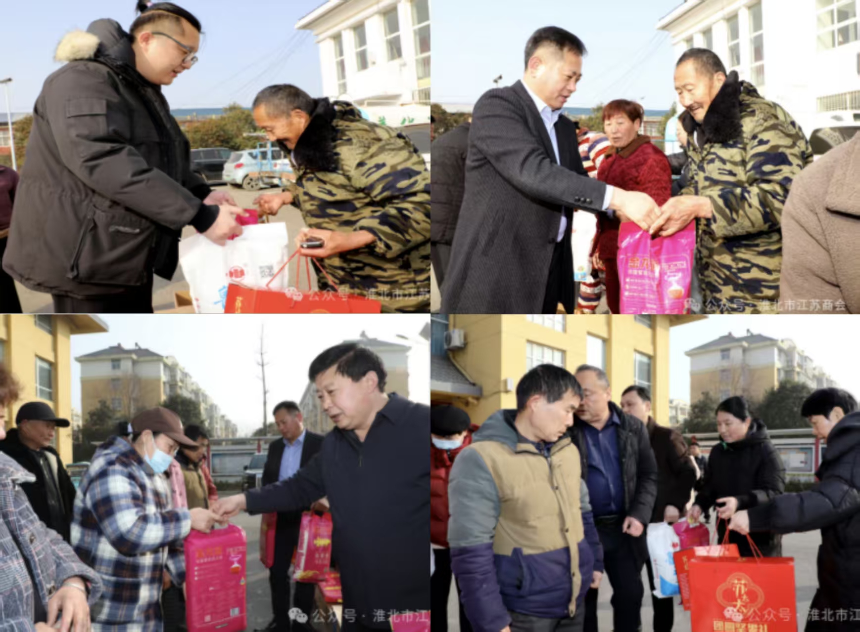 近日,淮北市工商联二级调研员王仓启,烈山区政协副主席、区工商联主席汪昌勇,区工商联党组书记、常务副主席程红玲带队,联合淮北市江苏商会组建慰问队伍,走进古饶镇土山村、宋疃镇马桥村,为困难群众送上春节关怀。