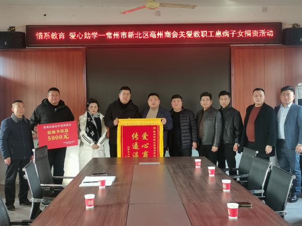 微光汇星河,爱心暖人间。近日,常州市新北区亳州商会会长施建辉、副会长张国辉、秘书长卢鹏等到利辛县永兴学区中心学校开展“情系教育,爱心助学”捐资慰问活动,为教职工患病子女李欣蔚送去关怀和温暖。利辛县委统战部副部长、工商联党组书记刘阳,永兴镇镇长韩劲松参加慰问活动。