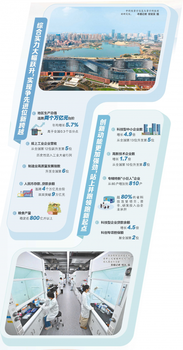 回望“十四五”这极不寻常、极不平凡的五年,安徽全省上下锚定目标,风雨兼程、踔厉奋发,有效化解系列风险挑战,取得了总量向上、动能向新、结构向优的历史性成就,“十四五”规划主要目标顺利完成,安徽发展位势显著提升,外在形象和内在气质加速蝶变。
