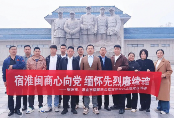 为传承红色基因、厚植爱国情怀,深化商会党建共建,3月31日,宿州市福建商会、淮北市福建商会携手走进淮海战役双堆集烈士陵园,共同开展“宿淮闽商心向党 缅怀先烈赓续魂”联合主题党日活动。两市商会党支部书记、会长、党员及会员代表参加。