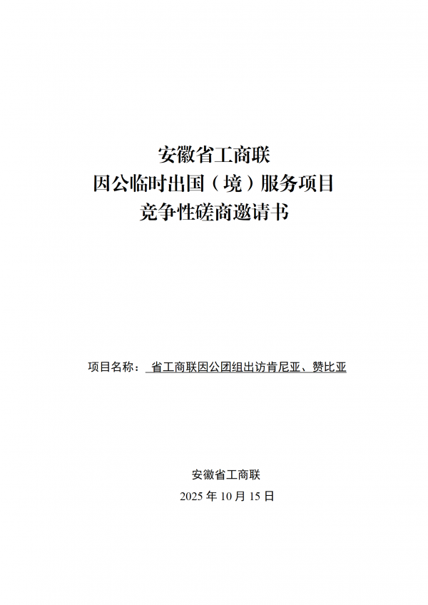 安徽省工商联因公临时出国(境)服务项目竞争性磋商邀请书(251015).docx【27.88 KB】