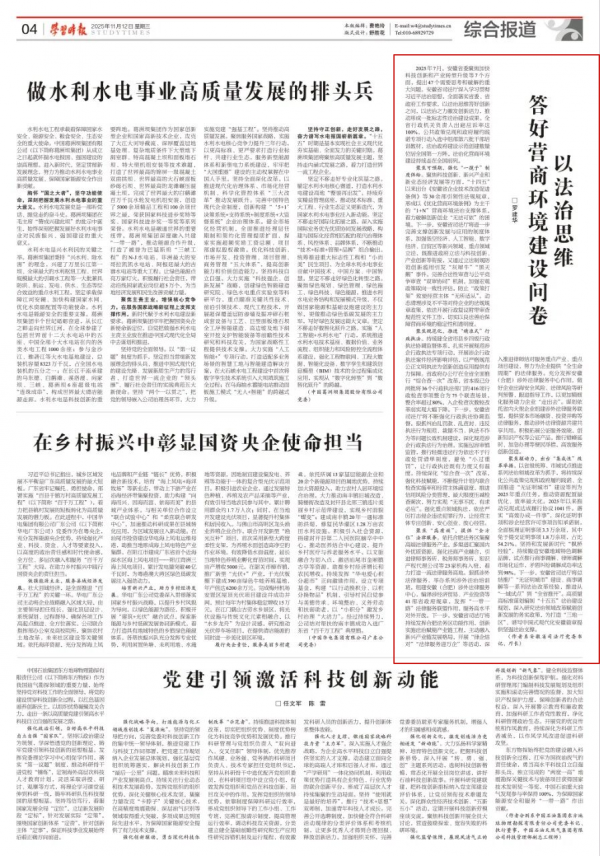 2025年7月,安徽省委聚焦加快科技创新和产业转型升级等7个方面,提出47个需要思考和破解的重大问题。安徽省司法厅深入学习贯彻习近平法治思想,全面落实省委、省政府工作要求,以法治思维答好创新之问,以法治之力激发创新活力,推动形成一批标志性法治建设成果。全省行政机关负责人出庭应诉率达100%,公共政策兑现和政府履约践诺专项行动入选中组部第六批干部培训教材,法治政府建设示范创建数量位居全国第一方阵,法治化营商环境建设持续走在全国前列。