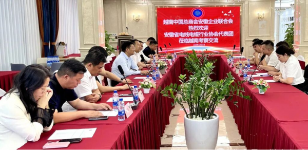 11月21日,安徽省电线电缆行业协会代表团一行到访越南中国总商会安徽企业联合会(以下简称“越南安徽总商会”),围绕安徽线缆产业如何利用越南平台拓展东盟及欧美市场进行座谈交流。越南安徽商会常务副会长倪修恒、副会长兼秘书长李朋、副会长兼执行秘书长麻宗伟,安徽省电线电缆行业协会常务副会长魏志明、副会长卢康宁、秘书长胡良健等参加了上述活动。