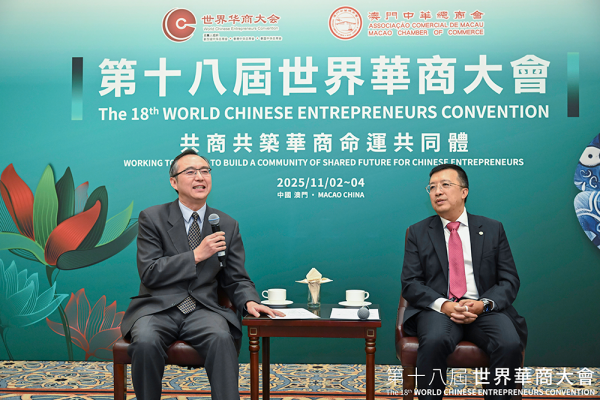 11月2日至4日,省工商联党组书记、常务副主席张启明率代表团访问澳门,参加第十八届世界华商大会,拜会澳门相关机构和社团,促进皖澳经贸交流合作。第十八届世界华商大会由澳门中华总商会主办,大会以“共商共筑华商命运共同体”为主题,旨在促进全球华商间的交流合作,共同探索发展新机遇。来自全球50多个国家和地区的华商代表、专家学者、政企界人士共4000余人参会。大会期间,张启明率省工商联部分企业家副主席、副会长、常委应邀参加大会欢迎晚宴、开幕式及主旨论坛等重要活动,促进安徽企业与港澳企业、海外华商沟通交流,充分利用华商大会平台,助力安徽与境外贸易合作、人文交流,全方